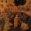 However, in the fall of 1504, a youth from Urbino showed up in Florence, eager to prove his mettle. Raphael immediately latched on to every advanced tendency in Florentine painting, absorbing what he could immediately and chewing over the rest. Clearly the "Adoration of the Magi" lodged deeply in his imagination. He quotes figures from Leonardo's painting in the "School of Athens" fresco which he executed around 1509 in Rome.