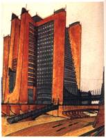 I bet the set designer on the original "Batman" movie (the Tim Burton one)--Anton Furst, was that it?-- saw these drawings. He won an Oscar, and then committed suicide if I recollect. Perhaps that's Sant'Elia's fate.