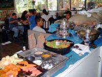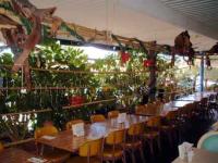 "Who did the paintings, the plants, the lights, the signs?" I asked Jose. "I did!" he said. "We did! It's all family. The cooking. The shopping. The carpentry and painting." Well, all I can say is that his family's got quite a knack for festive and welcoming color, design, and spatial layouts. And, hey, the place really hops on Friday and Saturday nights.