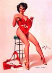 Well, I immediately went back to my Elvgren book and was stupified to find it was full of naked women wearing heels! As early as the 1940s, Elvgren's mysteriously powerful artisitic antenna had picked up on this footwear conundrum that would vex us at the end of the century!