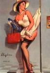 Before I could control myself, I remembered that Elvgren too had painted pictures of scantily-clad girls (and some apparently wearing nothing at all!) Was it possible that the Elvgren, uber-artist that he was, had successfully anticipated performance art 50 years or more in the future? I manfully suppressed the thought and went on:
