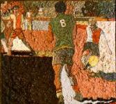 A large exhibition of Jess' work toured the country in '93 and '94 -- that's when I caught up with it. Spending a couple of hours in Jess-ville was like visiting some mythical, dreamscapish land of the imagination where the fanciest kind of high-gay avant-garde poetry found common cause with comics and cigar-box paintings. His work is childlike but sexual, and hallucinatory and intense too. It's both arresting and alive; when you look at a painting of his, then leave it, and then return to it, you do so half-expecting it to have morphed into something different.