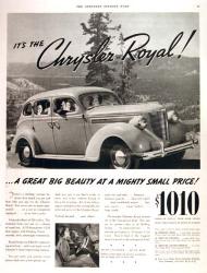 Besides shrinking drivers and passengers, cars in ads were sometimes crammed to the gills with people -- see the ad for the 1938 Chrysler. This was to persuade folks with large families that the whole gang could be accommodated. Unfortunately, this is borderline deception.