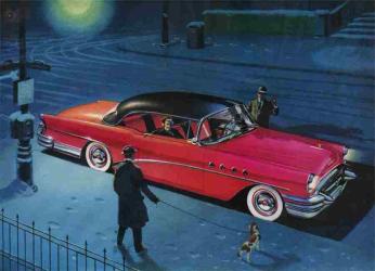 More generally, I'd noticed some of the advertising tricks Donald pointed out myself in looking at old car ads. The most common one in paintings seemed to be depicting the driver and passengers as smaller than they would be in real life, making the car itself look enormous in comparison. Larger, for that matter, than would be remotely practical in real life. Along with extreme foreshorterning, dramatic angles, and creative distortion, the purpose seemed to be to make the car in the ad look huge, exciting, and powerful, never mind that the real thing was just another dumpy little car. If people noticed the deliberate manipulation of the advertising image at the time, perhaps they just shrugged and accepted it as typical and something to be expected from an ad that everybody knew was trying to sell you something, and weren't too disappointed when they saw the real thing in the dealer's showroom.