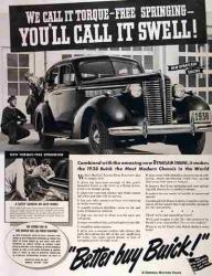 In the late '30s gear-shift levers were moved to the steering column, thereby accommodating a (slender) third passenger. Another people-trick for photographic ads was to hire small models and position them flat against the doors. This created the illusion of a large, wide car.