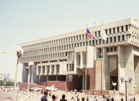 Do you remember the outside door handles? Seems to me they were simply vertically-mounted 1/2 inch (approximately) square cross-sectioned steel bars that were painted white like the rest of the exterior surfaces. The edges were fairly sharp and it hurt to pull doors open. This might have matched Edward Durrell Stone's architectural scheme but it was pretty rotten ergonomics, say I. I haven't been there since 1974, and perhaps they re-did the door handles. Anyone know?