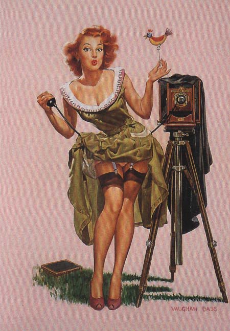 My excuses are: (1) I'm not into soft porn or even much into girlie stuff and therefore have limited knowledge and resources for finding the material, and (2) all my publications are boxed and sitting 60 miles from here so I can't dig out, say, an old car mag and scan an ad.